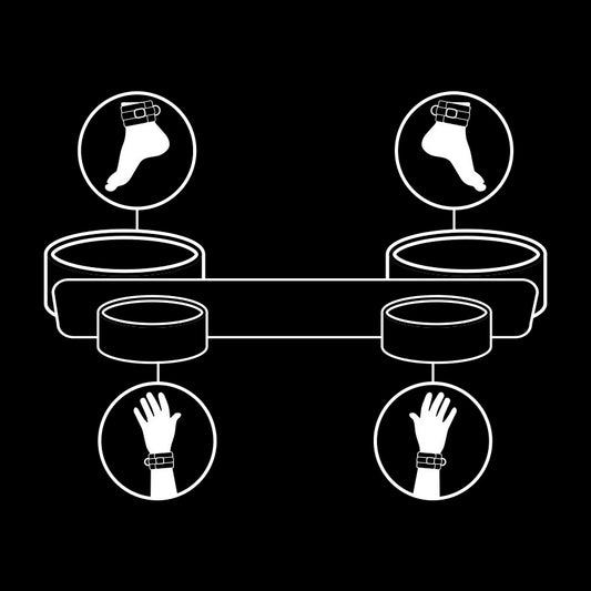 FÉTICHISME SOUMIS - POSITION DE MAÎTRE AVEC 4 MENOTTES DOUBLÉES DE NOPRÈNE